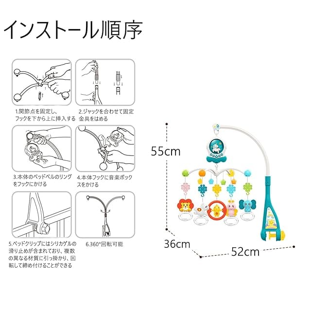 【ベビーベッドの組み立てが簡単】直径1.5〜3.81cmのベビーベッドに取り外して固定できます。 簡単な取り付けのための英語の説明書が付属しています。 0歳から4歳の新生児への素晴らしい贈り物です。