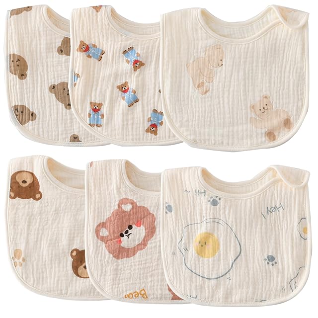 [GoUseGo] ベビー スタイ よだれかけ 男の子 女の子 6枚セット 綿 ガーゼ地 赤ちゃん お食事スタイ 新生児 1歳 2歳 3歳 お食事用 コットン 吸水性 通気性 離乳食 幼児 お食事エプロン 保育園 入園準備 | ascend