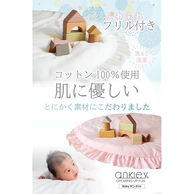 [ふんわりソフトコットン100%]ankley(アンクレー) サニーマット ベビーマット プレイマット 円形マット フリル 新生児から 綿100% 月齢フォト 洗える 出産祝い ギフト (ホワイト) | ascend
