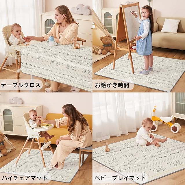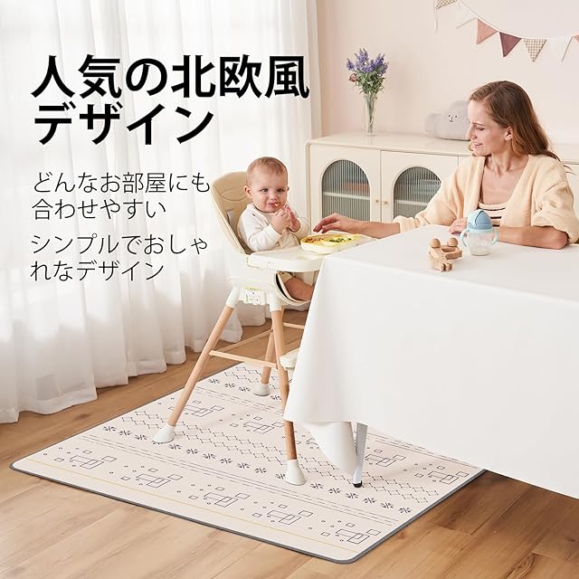 【様々なシーンで活躍】床や絨毯の上に敷いて、食べこぼしを防ぐマットとしてだけではなく、お絵かきやねんど遊びなどのプレイマットとして、子ども用のテーブルクロスや、野外でのレジャーシートにも使える、使用シーンを選ばない便利なお食事マットです。