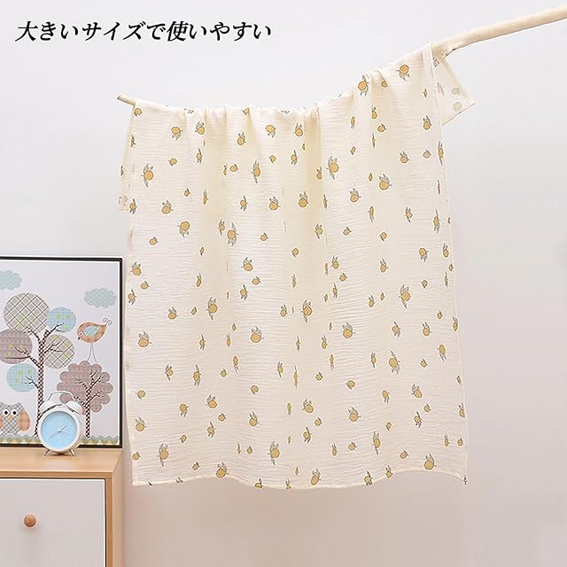 【大きめサイズ&広幅に適用】100cm×100cmのサイズを採用し、ベビーおくるみとしてはもちろん、ひざかけや授乳ケープ、プレイマット、タオルケット、ブランケット、おむつ替えシーツとしてもお使います。ベビーカーに結び付けて日除けカバーとして使用するのもお勧めです。