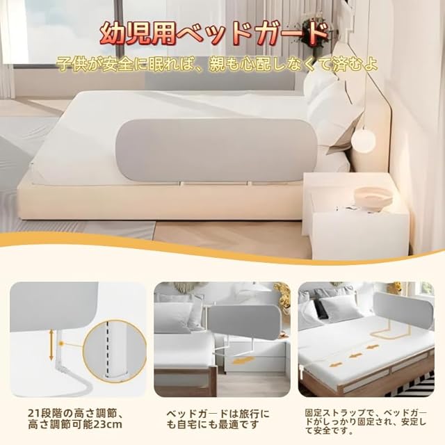 3. 組み立ても工具不要でとても簡単です。ベッドガードレールを広げ、下部をマットレスに固定し、安全ストラップで安定性を高めるだけで、手間なく設置できます。