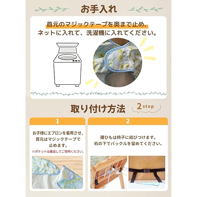 [Peopensee] 保育士推奨 食べこぼしキャッチでお掃除ラクラク テーブルクロス一体型エプロン 離乳食 ベビー つかみ食べ 長袖 撥水 保育園 赤ちゃん 食べこぼし BLW (ライオン柄1枚)