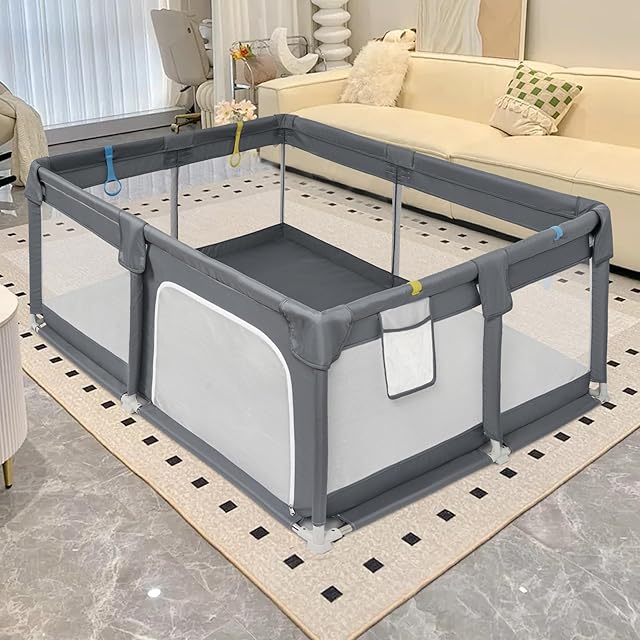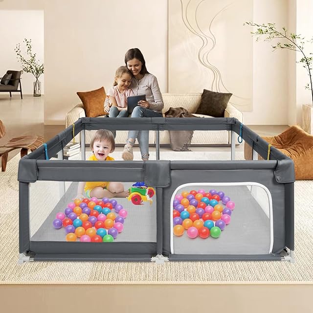 BQKOZFIN ベビーサークル サークル 赤ちゃん(150x180x66cm)長方形 コンパクト 扉付き 大型 プレイヤード baby playpen 滑り止め吸盤 メッシュタイプ 洗濯可能 収納バッグ付き 室内外対応 子供 軽量 日本語の説明書付き(ダークグレー) | ascend