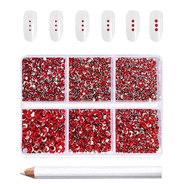 1箱パック、6サイズ計7,200個のライトレッドネイルラインストーン入り、小さなラインストーンピッキングペン付き。メイン写真のアクリルネイルは含まれていません。小さいサイズのネイルラインストーンを見せるために使われているだけです。