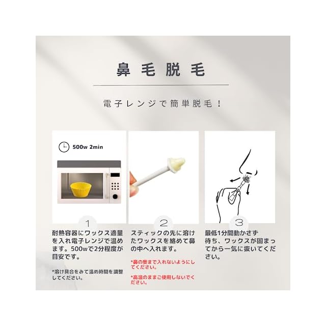 容器を取り出す際、ワックスを肌に塗る際は火傷に十分お気を付けください。