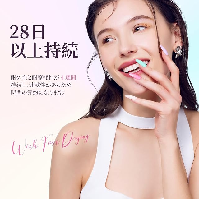 塗りやすく長持ち:150°幅の滑りやすいブラシと滑らかなジェルを使用して、完璧なネイルを簡単に作成できます。ネイルランプの下でわずか 30 秒で乾燥し、最長 28 日間持続します