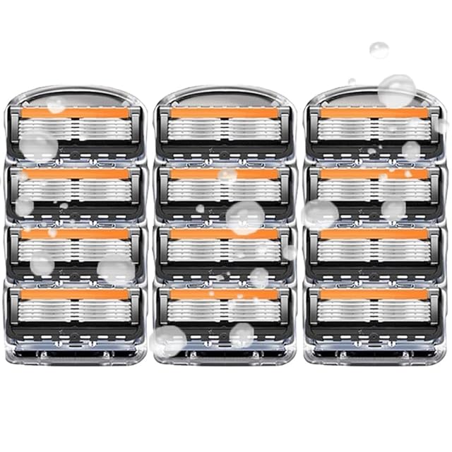 【幅広い互換性】ジレット プロシールド、プログライド、フュージョンなど、主要な5枚刃カミソリに完全対応。 純正品と変わらぬフィット感で、快適な剃り心地を実現します。12個入りで提供されているため、長期間使用できます。