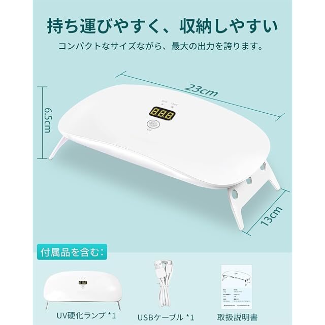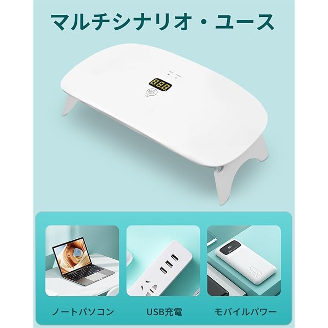 【多目的使用】UVレジンやUV接着剤の硬化だけでなく、 ほとんどすべてのジェルの硬化範囲に対応しています。手足両用、強力な硬化効果を持ちつつ、肌や目を優しく保護します。ベースジェル、トップジェル、カラージェル、ジェムストーンジェル、UVレジンなど、ほぼすべてのジェルタイプに対応します。