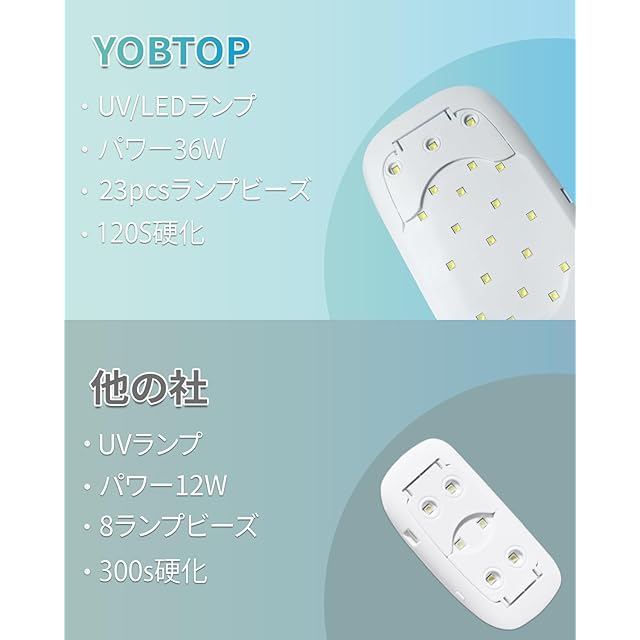 【UV-LED二重光源のUVライト】36W UVライトは23個の最新UV-LED二重光源を備えており、波長(365nm+405nm)、速乾対応を実現、短時間で硬化が完了します。UVレンジ作業や快適なハンド/フットネイル体験を提供します。