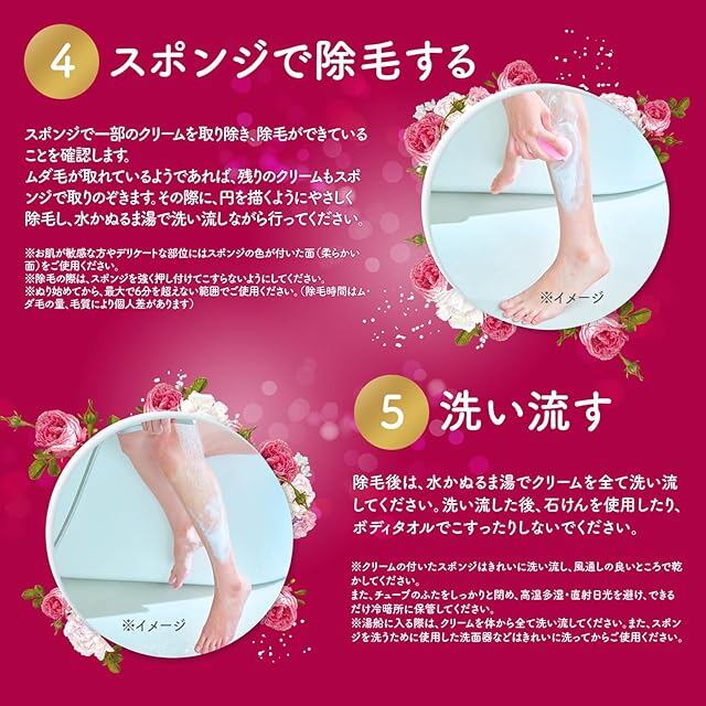 ●水に流れにくい成分配合で、クリームに水がかかってもクリームが肌に残り除毛効果が続く。
