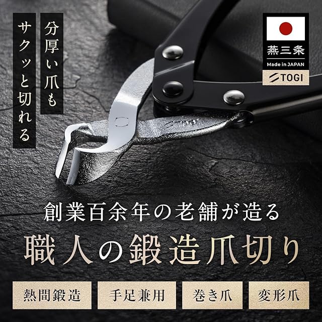 【◆TOGIについて】 初めて日本製の刃物を使った時の感動を今でも覚えています。 切れ味の良さ、洗礼されたデザイン、こんなに素晴らしい日本の職人の技術を沢山の人に知って日常に傍にあるものであってほしい。 手業で造られる伝統技術の良さを感じてもらいたいという思いから、”TOGI”は生まれました。 刃物専門ブランドTOGIは年間累計販売数30,000個を突破いたしました。お目を留めていただき誠にありがとうございます。 今後ともTOGI へのご愛顧と日本の伝統を繋げられるよう、応援の程何卒よろしくお願い致します。 末筆ながら、皆様のご健勝とご多幸を心よりお祈り申し上げます。 【◆商品詳細】本体サイズ:全長 130mm 質量:75g カラー:シルバー×ブラック(グリップ部分)仕上げ用にタガネ打ちの専用爪ヤスリ付属。
