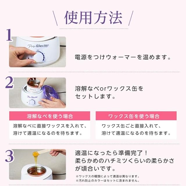 このワックスヒーターは、ワックスビーズ、ハードワックス、パラフィンワックス、ウォームワックス、クリームワックス、ストリップワックスなど、いろいろなワックスに対応しており、数分で安全かつ効率的で溶解できます。