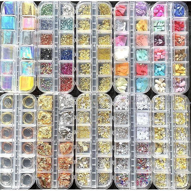 Almmy.6 ネイルパーツ 10種類 大容量タイプ ネイルアート シェル 金属パーツ ワイヤー 箔 オーロラフィルム さざれ石 宇宙 夏 オーロラフィルム 金属粒(タイプC(10種類)) | ascend
