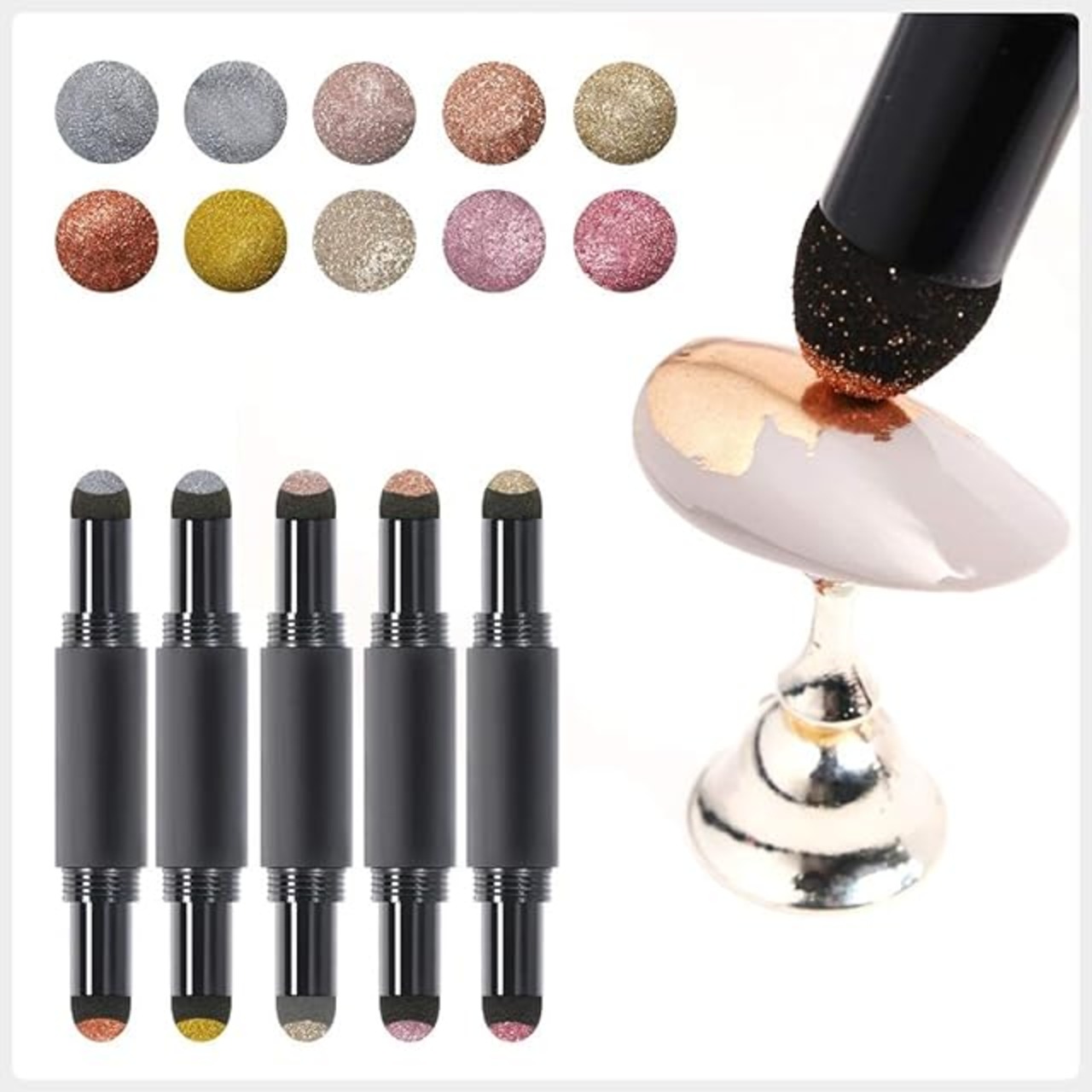 【マジックパウダーペン】普通のケースに入ってるパウダーと比べて、スティックタイプのミラーパウダーペンを設計してコンパクトに収納できます。キャップ内に固形パウダーが付いているので、キャップを開けるだけで簡単にミラーネイルが出来ます。