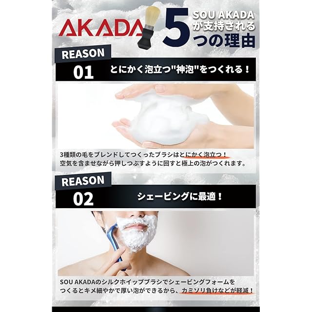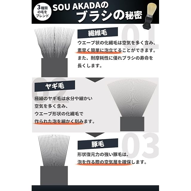 ✅【究極の泡立ち!】創業100年の老舗ブランドが開発!3種の毛をブレンドしたSOU AKADAのシルクホイップブラシ。