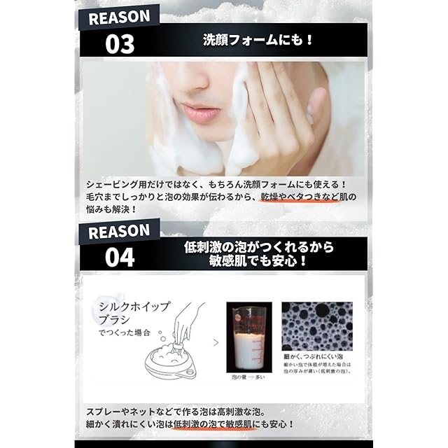 ✅【シェービングフォームで神泡!】カミソリ負け、乾燥、ベタつきなどの男のスキンケアの悩みは神泡で解決!もちろん洗顔用フォームにも!