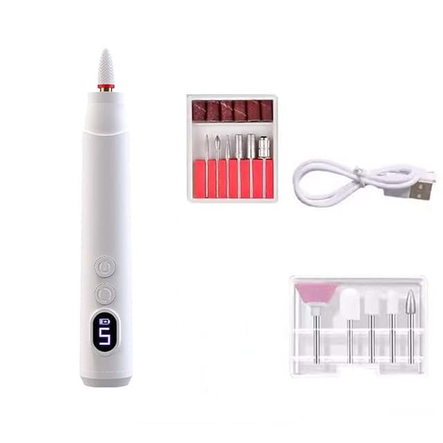 ネイルマシン ネイルドリル ネイルケア USB 充電式 電動ネイルマシン コードレス 無線 正逆回転 LEDライト付き ネイルケア 5段階回転速度調節 バッテリー残量表示 振動低減 ネイルケアマシン ネイルオフ ネイルファイル ネイル削り 角質除去マシン 爪磨き カット 甘皮処理 12種類のビットセット付き(ホワイト)