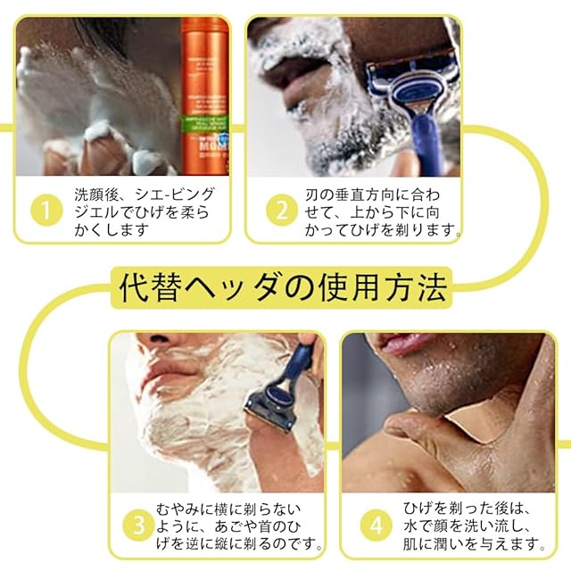 【簡単交換で使いやすさ抜群】ワンタッチ交換:ジレット プログライドのホルダーに簡単に取り付け可能。手洗い対応:シェービング後は水洗いし、清潔な状態を保ちます。