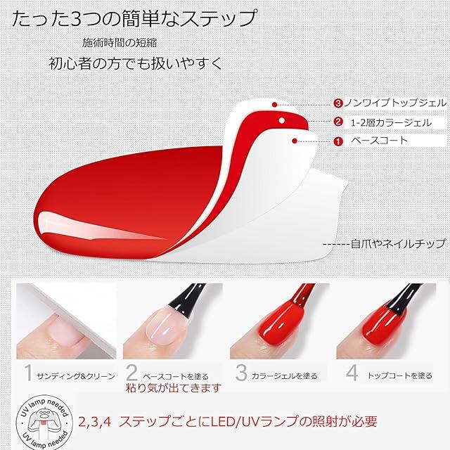 【UV/LEDライト対応】UV/LEDライトでの硬化が必要です。 当社の測定によると、硬化時間は6WのUVランプです:約180秒。 6W LEDライト:約90s 36W LEDライト:約60秒 48W UV+LED デュアル光源:約30s 使用量により硬化時間が多少異なりますのでご注意ください。