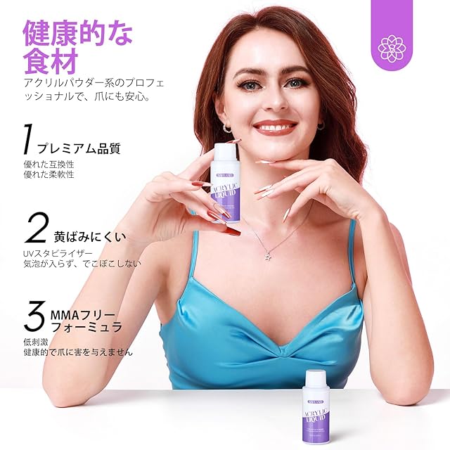 多機能で使いやすい-アクリルネイル用のサビランドネイルリキッドは、アクリルパウダーと一緒に使用して、アクリルネイルエクステンションとネイルカービングを簡単に作成できます。アクリルネイルリキッドは、天然の爪に最高の接着力を確保し、天然の爪に強力な保護層を作成します。ネイル用アクリルリキッドは、アクリルネイルパウダーと一緒に使うだけで、軽くて長持ち、強靭、超ツヤ、耐磨耗性に優れた伸びた爪を素早く作ることができます。
