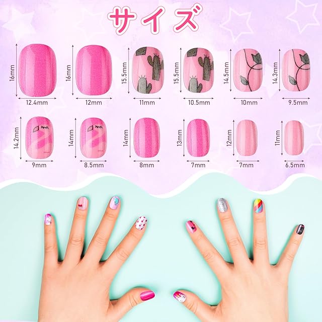 豊富なデザイン: この12箱の子供向けネイルチップには、ユニコーンや人魚、虹など、さまざまなテーマのデザインがあります。子供向けの楽しいデザインと明るい色合いが特徴で、小さな女の子たちに大人気です。