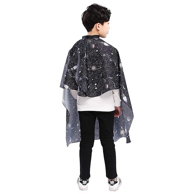 [Perfehair] 世界の美容院で愛用 パーフェヘア キッズヘアカットマント キッズカットクロス ケープ 宇宙 スペース ブラック 袖なし 理容室 自宅 ホーム セルフカット 散髪 男女兼用 ヘアーエプロン 散髪マント ケープ 子供用 | ascend
