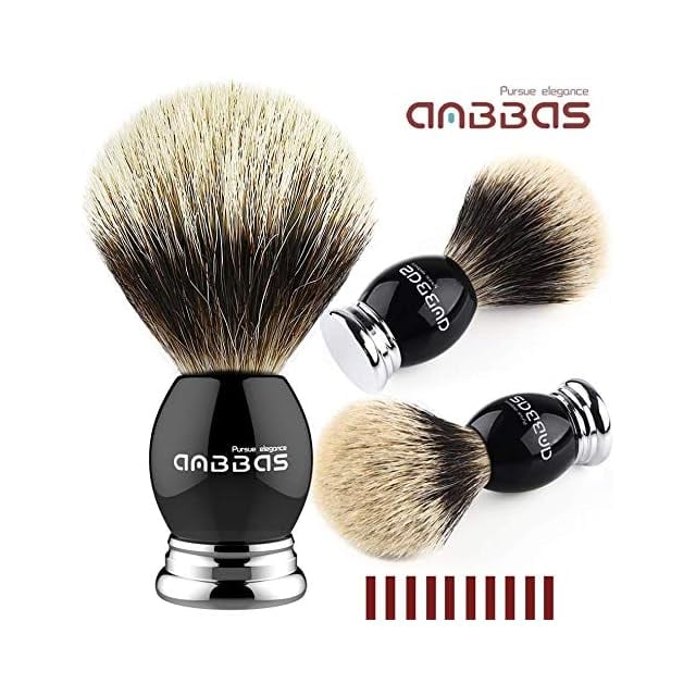 高級感あふれる天然アナグマ毛使用 - 繊細な泡立ちで快適なシェービング体験 天然のアナグマ毛を使用したシェービングブラシは、肌に優しく柔らかなタッチが魅力です。濃密な泡を素早く立て、しっかりとした泡が肌を包み込み、シェービング時の肌への負担を軽減します。毎日の髭剃りがプロフェッショナルな仕上がりに。