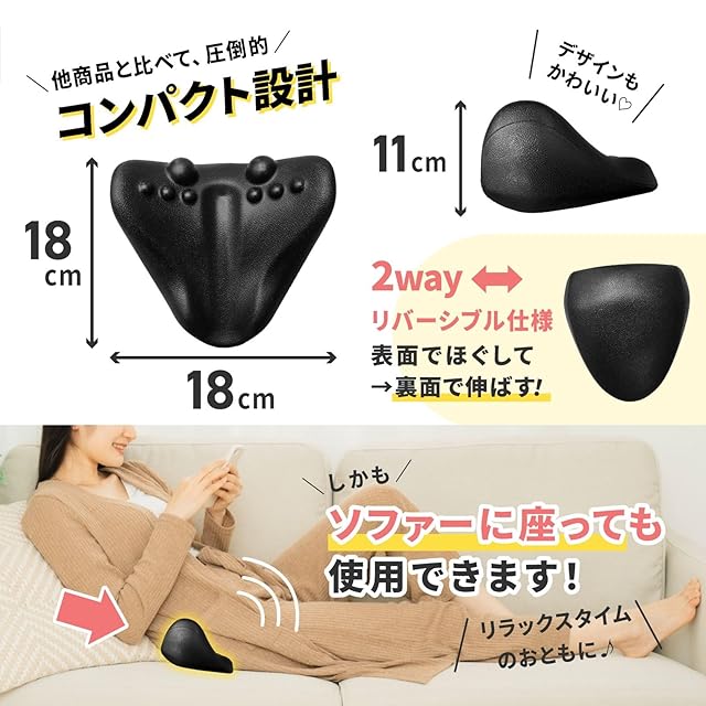 3.「コンパクト × 美デザイン!インテリアにも馴染むピロー」 マッサージグッズって、ゴツゴツしていたり、大きすぎて邪魔になったりしがち。でも、このピローは驚くほどコンパクトで収納にも困りません。しかも、デザイン性に優れていて、イボイボだらけの見た目とは無縁!シンプルでスタイリッシュなフォルムだから、リビングや寝室に置いても違和感なし。使わないときでもインテリアの一部として馴染む、今までにない美しいマッサージピローです。