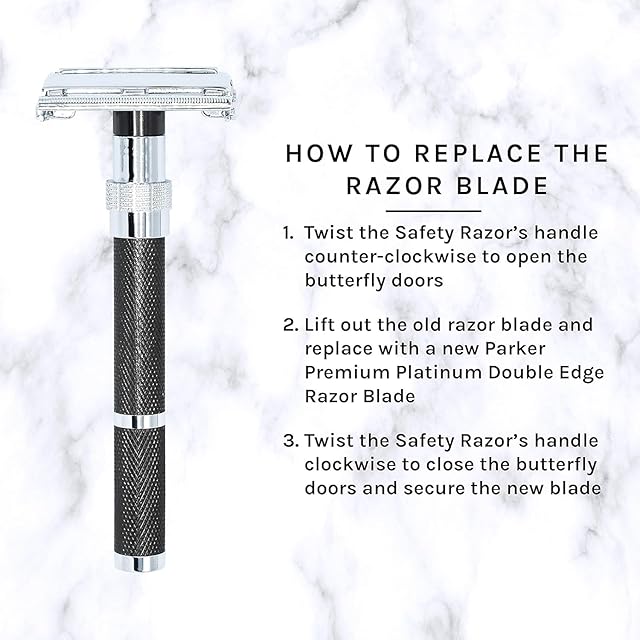 【世界トップの理容ブランドParker】<br> Parker Safety Razorは1973年にインドで創業し、50年以上にわたって世界各国のプロ理容師・理髪店・サロンの他に、一般の顧客にも愛用されている理容専門メーカーです。安全性の高いカミソリと革新的な設計を行い、最高水準で製造をされたシェービング商品を多数生み出すことで世界をリードしてきました。Mars shopはParkerの日本総代理店として、高品質のParkerブランドとサービスを提供して参ります。<br> <br> 【滑りにくいグリップ構造】 <br> シャワーや入浴中、濡れた石鹸の手で握っても、「確実なグリップ」が出来るように、ハンドル部分はギザギザにに再加工されております。これにより安全で正確にシェービングを行うことができます。<br> <br> 【最高品質 made in India】<br> Parkerの剃刀は、50年以上にわたり高い品質で評価をされております。細部に至るまで専門の職人が1個1個手作業で組み立てることで、精密さが保たれております。また替え刃は、スウェーデンが拠点のサンドビック社の最高品質ステンレス鋼で製造されております。同社独自のプラチナとポリマーがブレンドされた特殊コーティングが成されていることで長持ちで滑らかな剃り心地を実現します。<br> <br> 【設置方法】<br> ①本体下のダイヤルを回して、バタフライ部分開けます。 ➁新しい替え刃を設置します。 ➂再度、ダイヤルを回して、バタフライ部分を閉じます。※最後までしっかりと締めてください。 ➃設置完了 これで髭を剃ることができます。<br> <br>