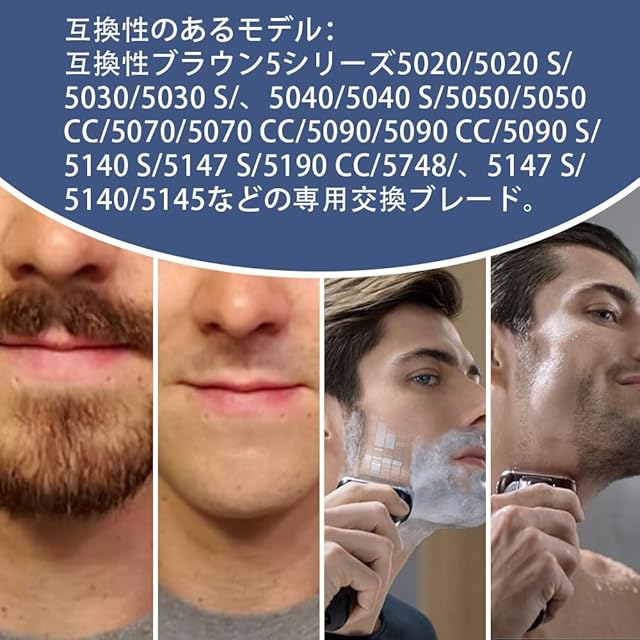 互換性のあるモデル:互換性ブラウン5シリーズ5020/5020 S/5030/5030 S/、5040/5040 S/5050/5050 CC/5070/5070 CC/5090/5090 CC/5090 S/5140 S/5147 S/5190 CC/5748/、5147 S/5140/5145などの専用交換ブレード。5147 S/5140/5145など。F/C 52 BおよびF/C 52 Sと互換性のある他のすべてのかみそりにも適用されます。