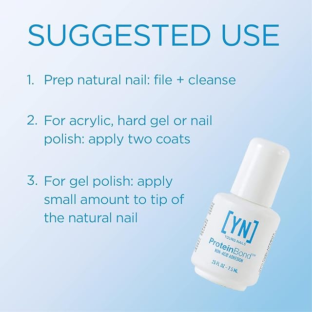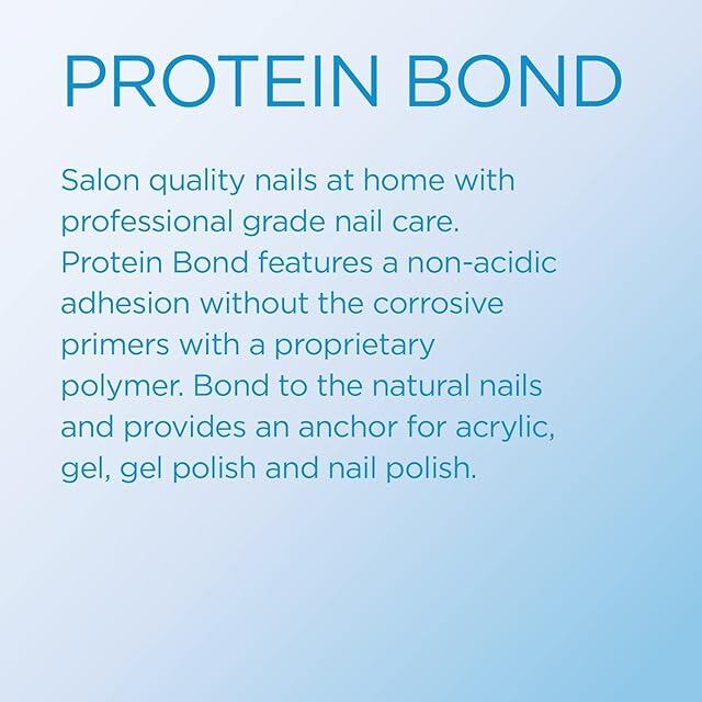Salon quality nails at home with professional grade nail care. Leading in non-acidic adhesion, the protein bond features a corrosion-free primer with a proprietary polymer. Anchor for gel, gel-polish, polish + acrylic