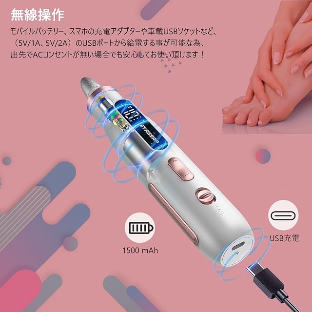 USB 充電式:従来の電動ネイルツールと違い、USB 充電をサポートしています。内蔵の 1500mAh リチウムイオン電池により、満充電で 3 - 4 時間の航続力を実現し、充電頻度を大幅に減らします。軽量でポータブルなデザインで、いつでもどこでもネイルケアを楽しめます。