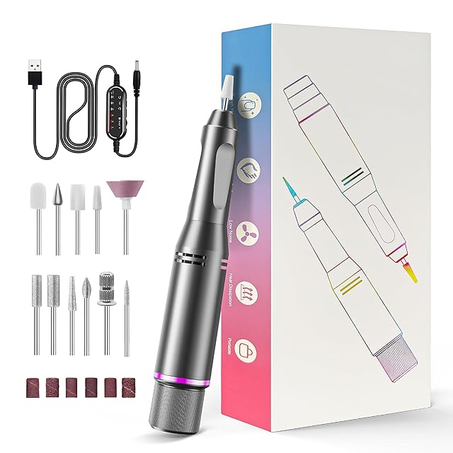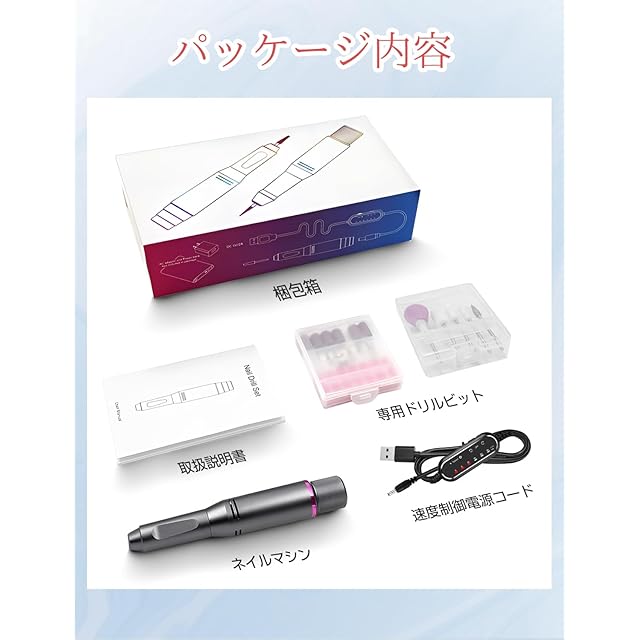 【プロフェッショナル】電動ネイルマシンキット 30000RPM 研磨 ネイルマシン 爪磨き プロ コンパクト アクリル ジェルネイル マニキュア対応 ネイルドリル 正逆回転 無段階変速 USB給電 11個のビット 自宅サロン用 プレゼント