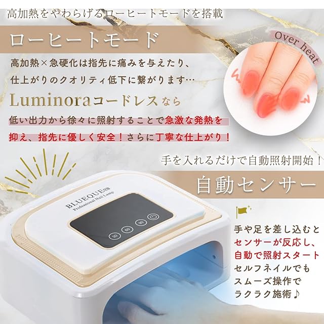 ネイリスト監修 ネイルライト コードレス プロ用 充電式 Luminoraコードレス ジェルネイル ライト led ジェルネイルライト 低ヒートモード UVライト レジン用 120W ガイドブック&ウッドスティック付き