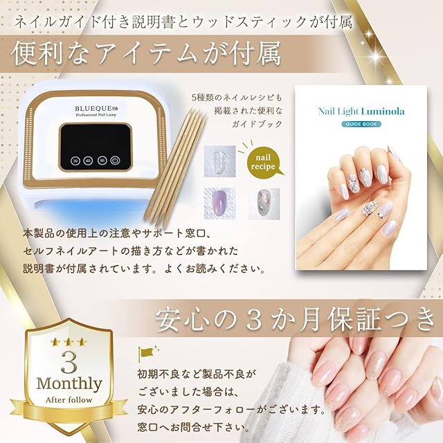 【初心者にも安心】セルフネイルは初めてという方もご安心ください!Luminoraコードレスはプロが監修したガイドブック付き。話題のミラーネイルやオーロラネイルが自宅でできちゃいます!
