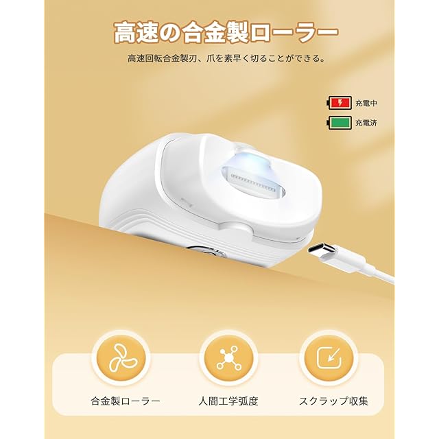 【2024強化版 · 面倒な爪切りが楽になる!】電動爪切り BOOMAX 自動爪切り 電動つめきり 爪削り ネイルケア 3段階スピード·照明LED·Type-C充電式·低騒音·ワンタッチ·簡単操作 電動 爪切り つめきり 安全 プレゼント/子供/大人/高齢者に向け