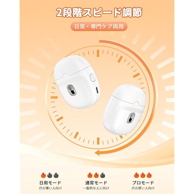 ●【強化!高回転合金製ローラー·2段階スピード調節】高齢者が硬化しつつある爪を考え、安全を確保することを前提に、当社はBOOMAX電動爪切りのパワーを再強化し、他の電動爪切りに比べて作業効率を40%向上させました!BOOMAX電動爪切りは高硬度・高回転の合金製ナットを搭載し、同時に2段階調速機能を搭載しており、右のボタンを押すことで「日用モード」「通常モード」「プロモード」の順番に切り替えることができ、自分のニーズに合わせて適切なモードを選択して使用することができる。