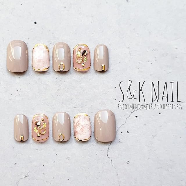 シンプル で エレガント な 大人 の グレージュ & マーブル ネイルチップ
