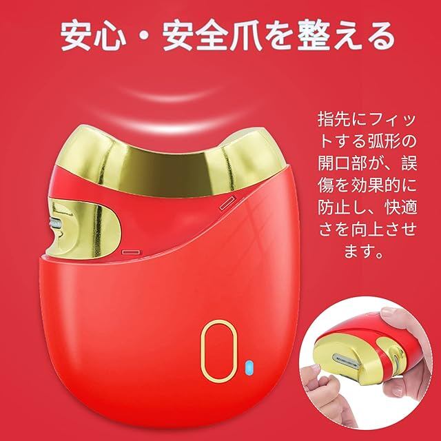 【公式】電動爪切り 2-in-1電動爪削り 電動つめきり 自動ネイルケア 爪切り・爪磨き、二段階スピード USB充電式 90日間使用可能、安心/安全/低騒音 子供/大人/高齢者に適用 プレゼント (赤色)