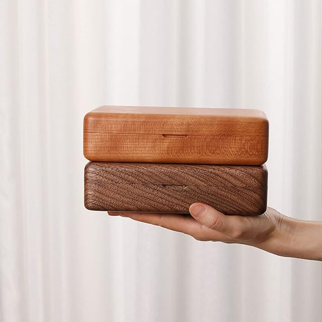 箱の素材はチェリー、茶色の素材はウォールナットで、無垢材のハンドメイド、無塗装、純粋な自然な色、自然な質感、滑らかな研磨、軽く豪華でエレガント。