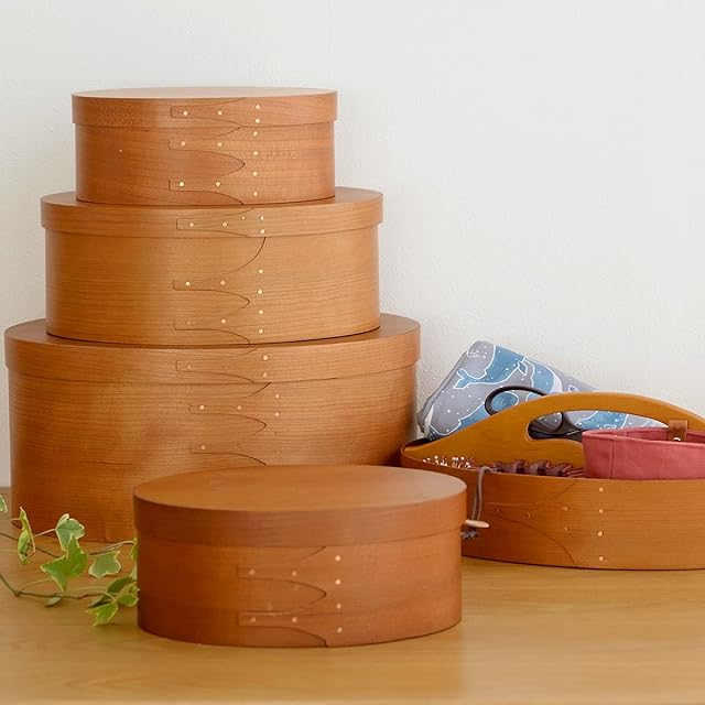 シェーカーの道具にヒントを得て作った、小さめSサイズのオーバルボックスです。身の回りのものを入れて手の届く場所に置いておくのにぴったりです。