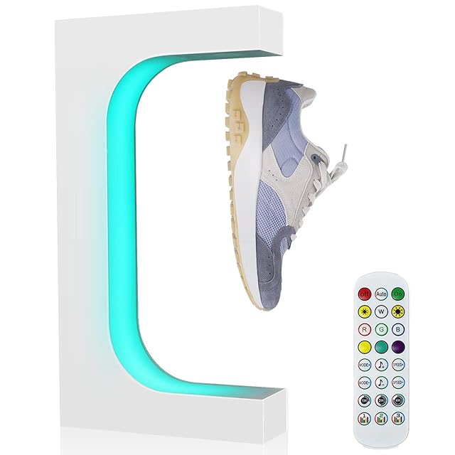 BAOSHISHAN浮揚靴ディスプレイ 磁気スニーカーディスプレイ 磁気浮上ディスプレイスタンド フローティングシューズディスプレイ 靴専用ディスプレイ 360°回転 LEDライトが付き フローティンディスプレイスタンド 吊り下げ式ディスプレイスタンド200-550g調整でき お靴屋の商品展示とプロモーションに適用110V (白い) | ascend