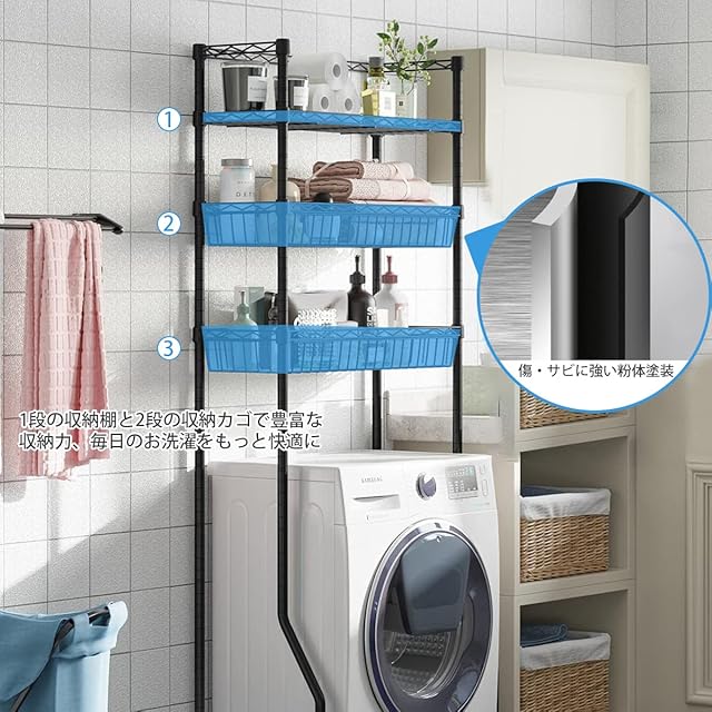 ✔多用途:縦型洗濯機にも設置可能です。スペースを効率的に配置したことで、設置が難しかった縦型洗濯機にも対応できるようになりました。
