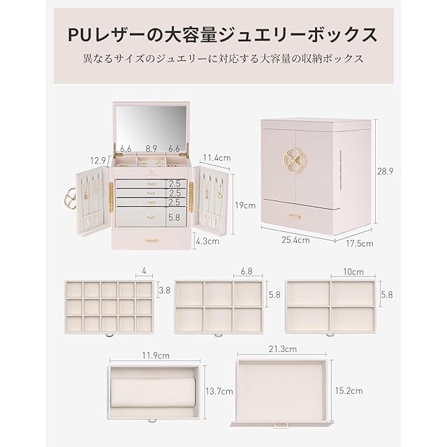 【優れた素材と仕上げ 】- この女性用ジュエリーボックスは、高品質の合成皮革と環境に優しい繊維板で作られています。内側はジュエリーに優しい柔らかいベルベットで覆われています。革は手触りが柔らかく、防水性と耐久性に優れています。