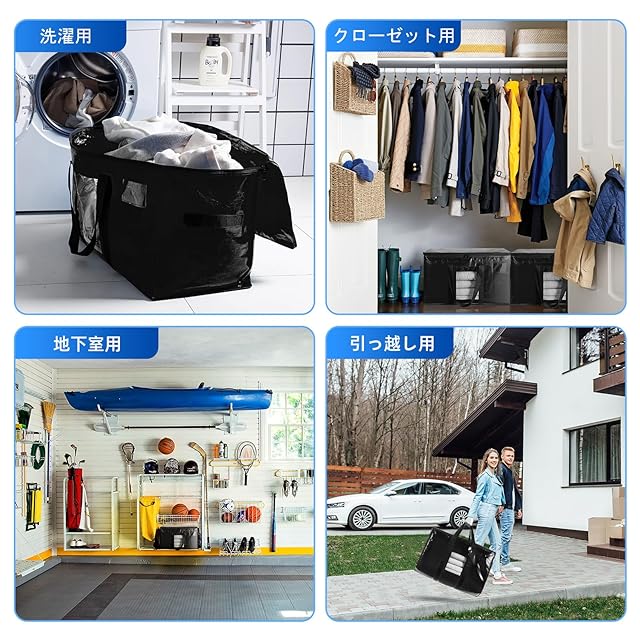 100L大容量 収納力抜群:抜群な特大引越しバッグの寸法:70cm X 35cm X 42cm、4パック。 両端のジッパーと中央に大きな開口部があるため、衣類、おもちゃ、靴、タオル、必需品、枕、寝具、シーツ、毛布、洗濯物、クリスマス飾りなどを簡単に収納できます