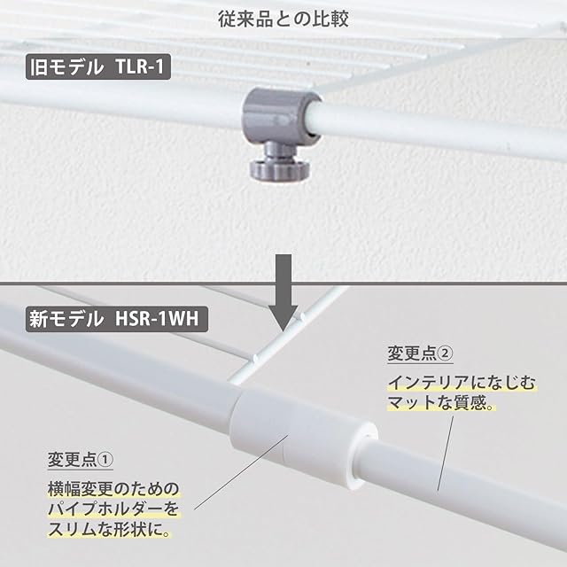 横幅は伸縮自在。スリムなパイプホルダーを回すだけで固定できる。ゆれ・ガタつきを軽減する設計です。