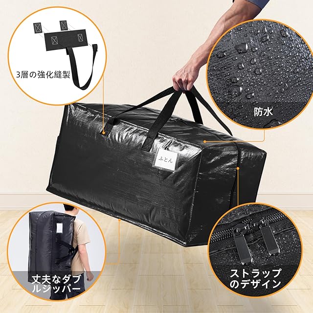 TAILI 大型収納袋 引越しバッグ 布団収納カバン 特大容量 ビッグバッグ 寝具ケース 持ち手付き 洋服 衣装ケース 羽毛ふとん 防塵防水 折りたたみ式 省スペース 引っ越し 背負える キャンプ 旅行 耐荷重 ブラック 2個セット | ascend