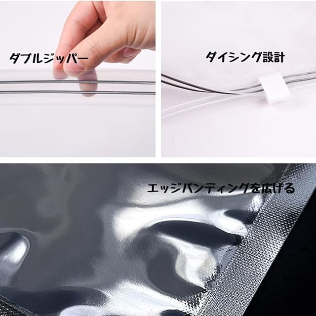 【ダブルジッパーデザイン】私たちの真空袋は、ダブルジッパーをフィーチャーされ、クリップに滞在し、圧縮プロセスの袋のための完全な真空環境を確保することができます。空気漏れを防ぐためのより良い固定のためのクリップがあります。