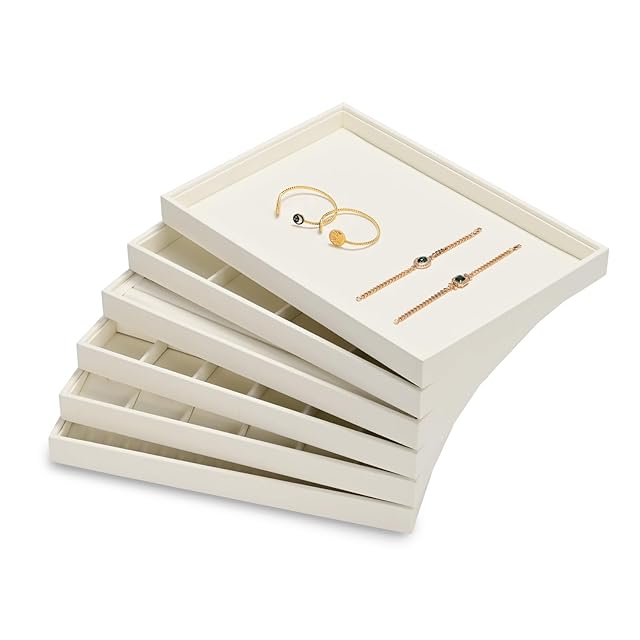 ✅【ユニークなデザイン】ベーシックカラーの「ベージュ/ブラック」に加え、人気の「ブルー」をラインナップ。スタイルも6種類あり、ジュエリーのデザインやショップの内装に合わせてお選びいただけます。蓋なしのジュエリートレイは、底の出っ張り部分と、上部のへこみ部分がかみ合うように作られているため、引き出しやドレッサーに積み重ねてスペースを節約し、増え続けるコレクションに対応できます。 また、今回初めてマイクロファイバー素材を使用し、よりソフトな手触りで、ジュエリーをより高級感のあるものにしてくれます。お店で同じ素材・色の商品と一緒にお使いになることをお勧めします。